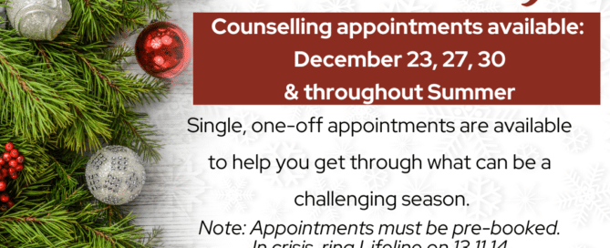 Holiday Availabilities for Counselling in Croydon I understand that the Christmas period can be challenging for [...] By Kate Reimer|2024-12-04T17:33:54+11:00December 2, 2024|Categories: Resources, Uncategorized| Read More